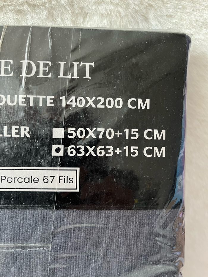 Parure de lit, Housse de couette grise et beige 140 x 200 cm + 1 taie d oreiller 100 % coton