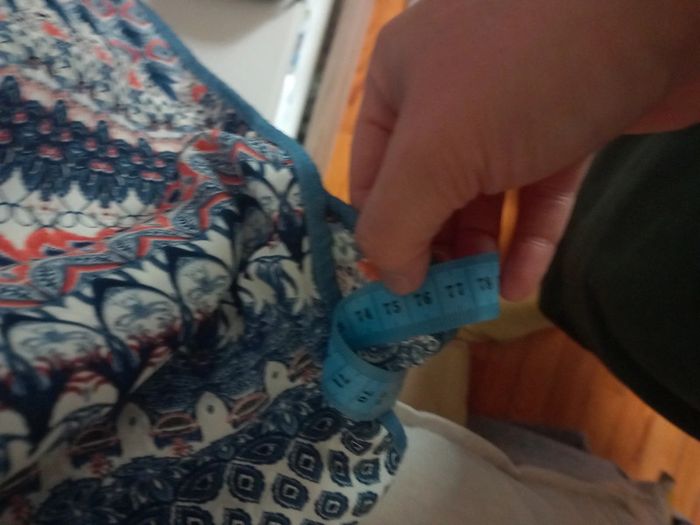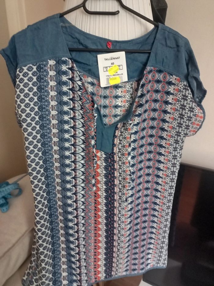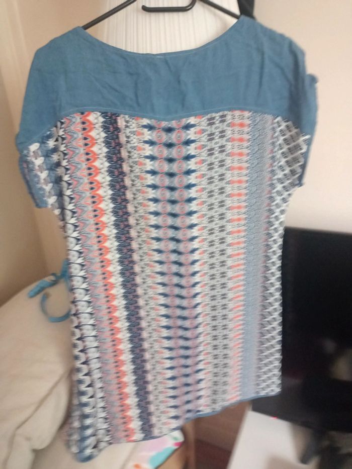 Aisselle à aisselle 52 cm Long.75 cm Manches chauve-souris Col v Motifs graphiques