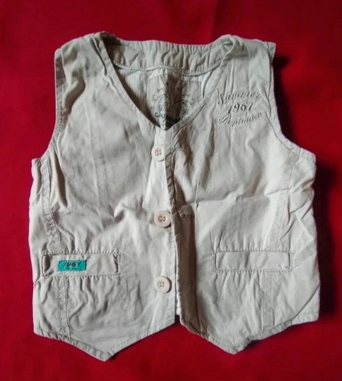 Veston, gilet sans manches de costume Très classe et chic, parfait une petite chemise Veste de cérémonie, mariage baptême anniversaire etc Avec doublure intérieur. 100% coton Taille 4 ans État neuf.jamais utilisé