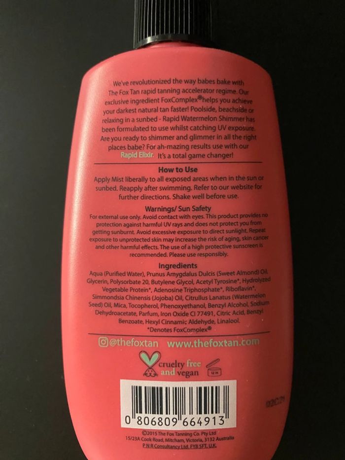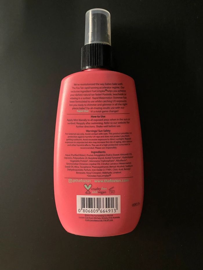 The Fox tan Watermelon Accélérateur de bronzage irisé sans autobronzant spray paillettes pour le visage et le corps, pour le soleil et le solarium, 120 ml Prix ferme Toute offre est automatiquement refusé
