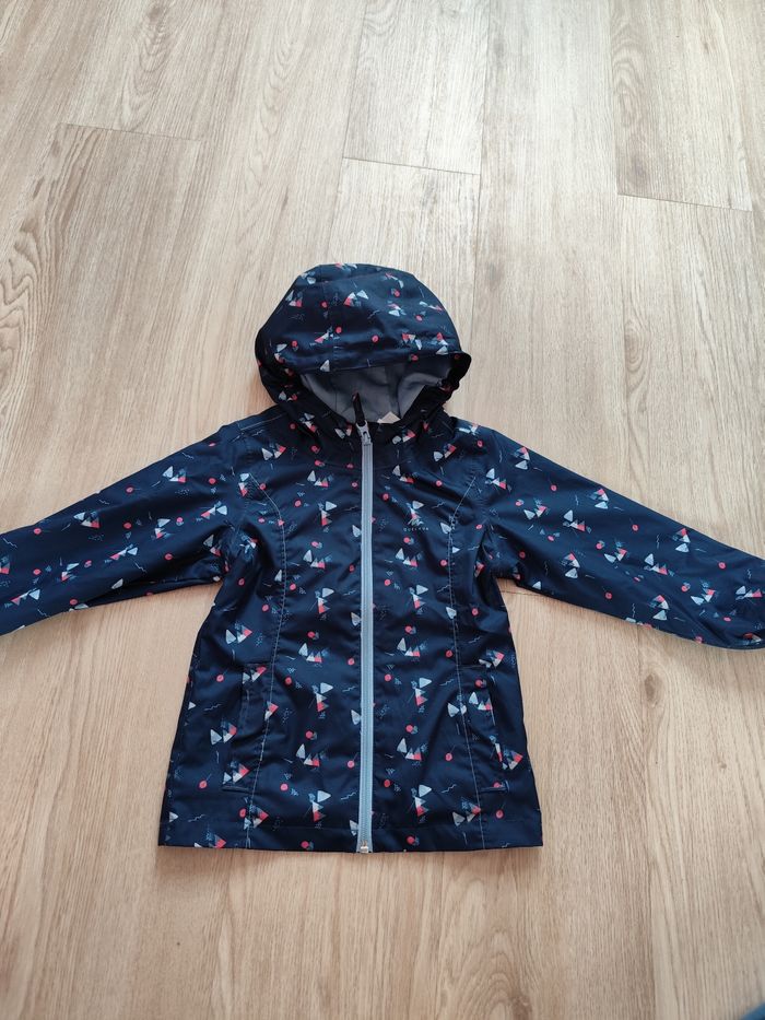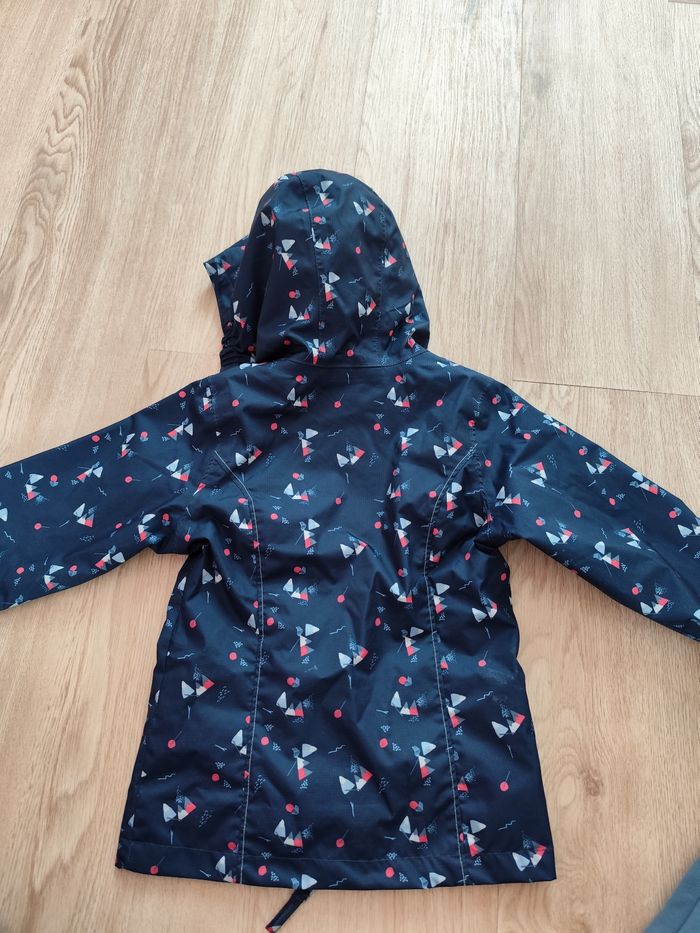 Parfait état imperméable Decathlon fille 3-4 ans, très bien pensé, la fermeture monte bien, pas une goutte d'eau ne s'infiltre