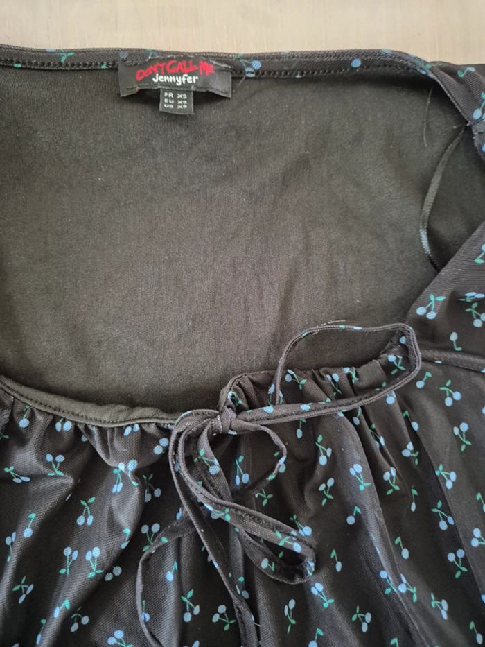 XS Noir avec cerises bleues Manches transparentes Jennyfer #cclenlerouxprintempsxsadulte #cclenlerouxétéxsadulte #cclenlerouxautomnexsadulte #cclenlerouxhiverxsadulte