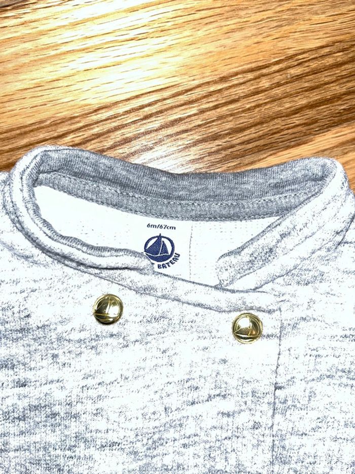 Joli gilet gris col Mao très bon état petit bateau 6 mois/68 cm - photo numéro 2