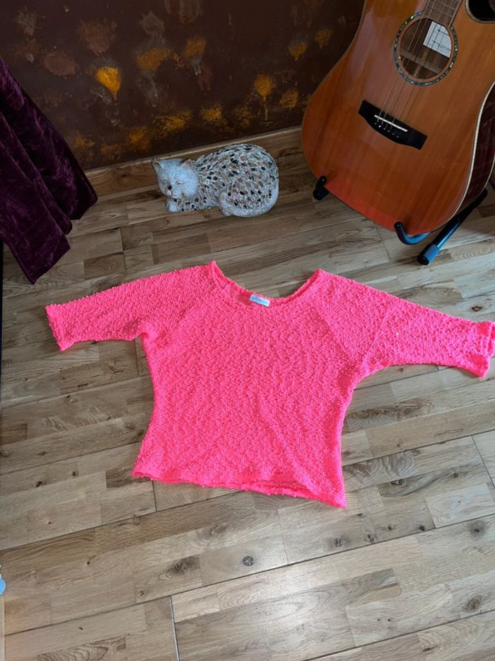 Joli pull d’été rose flash pailleté cache cache TU - photo numéro 1