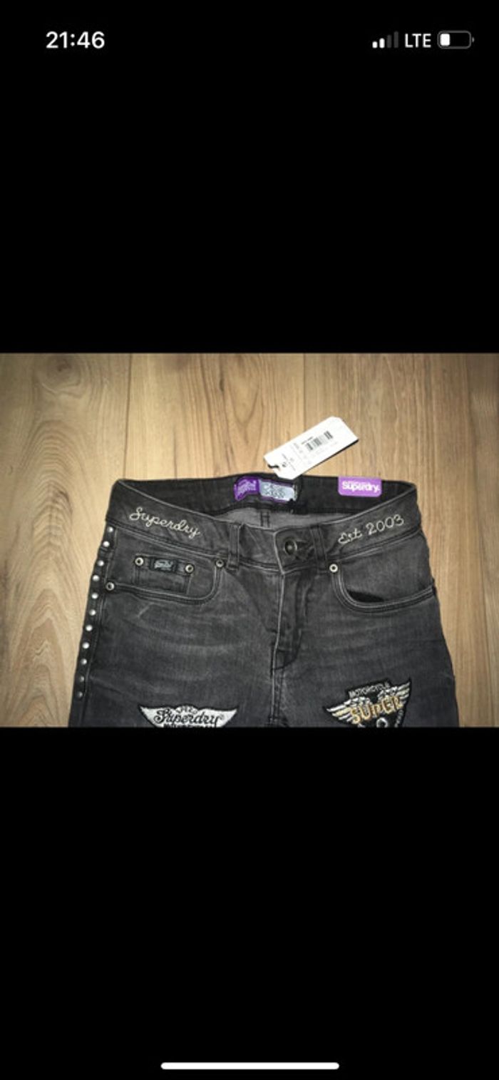 Jeans skinny gris noir écussons superdry neuf avec étiquette xs/25 - photo numéro 2