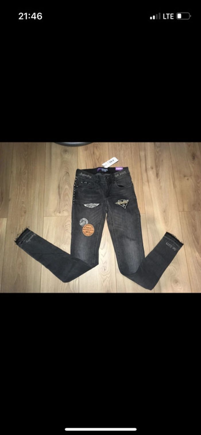 Jeans skinny gris noir écussons superdry neuf avec étiquette xs/25 - photo numéro 1
