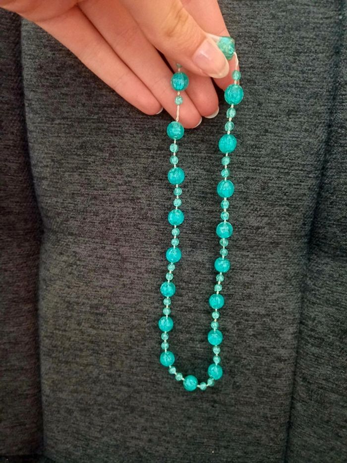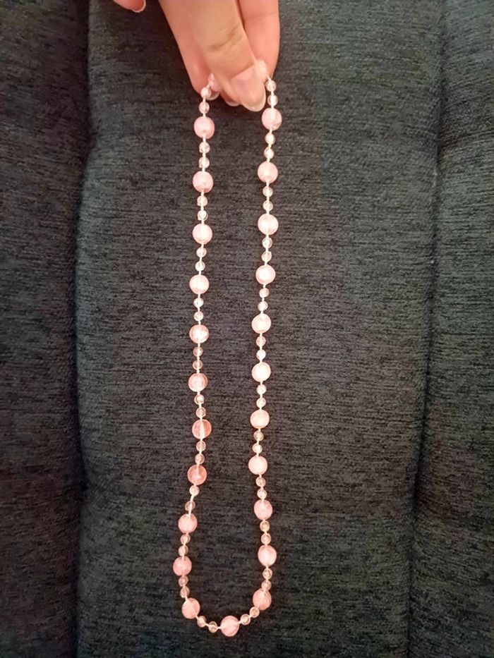 4 colliers colorés de différentes tailles Dimensions prises lorsque le collier est fermé - violet : environ 32 cm - blanc : environ 30 cm - rose : environ 23 cm - bleu : environ 17 cm