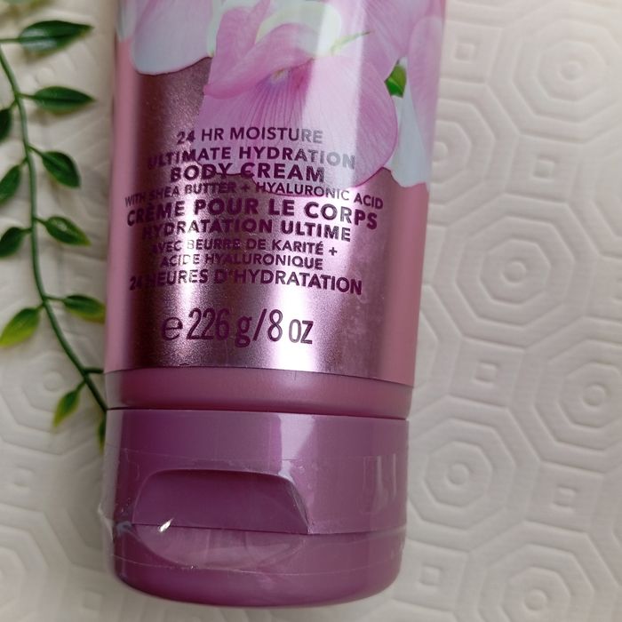 Avec beurre de Karité + Acide Hyaluronique + Vitamine E + Aloès+ Cacao 24 Heures D'hydratation Marque Bath And maqui Body Works Notes: Pois De Senteur, Poire Juteuse, Freesia, Framboise Juteuse et Musc Doux. Riche et luxueuse pour une hydratation instantanée Laisse sur la peau une agréable sensation de douceur nourrissante. Contenance 226g/8oz Jamais Utilisé