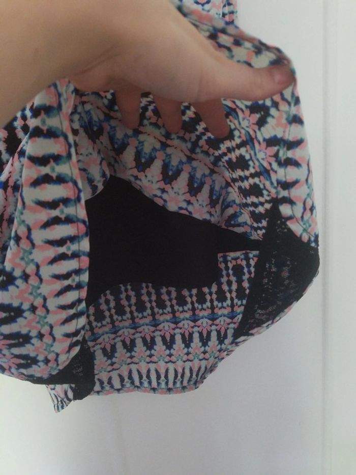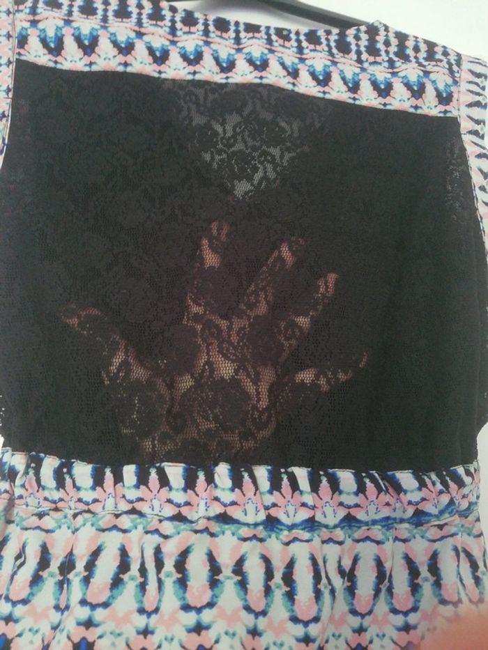 Très bon état Superbe robe légère Etam taille 40 Le dos est en dentelle noire et il y a un rappel de dentelle sur les côtés en bas de la robe. Le bas est doublé et la taille est élastique. Idéal pour l'été car légère et confortable