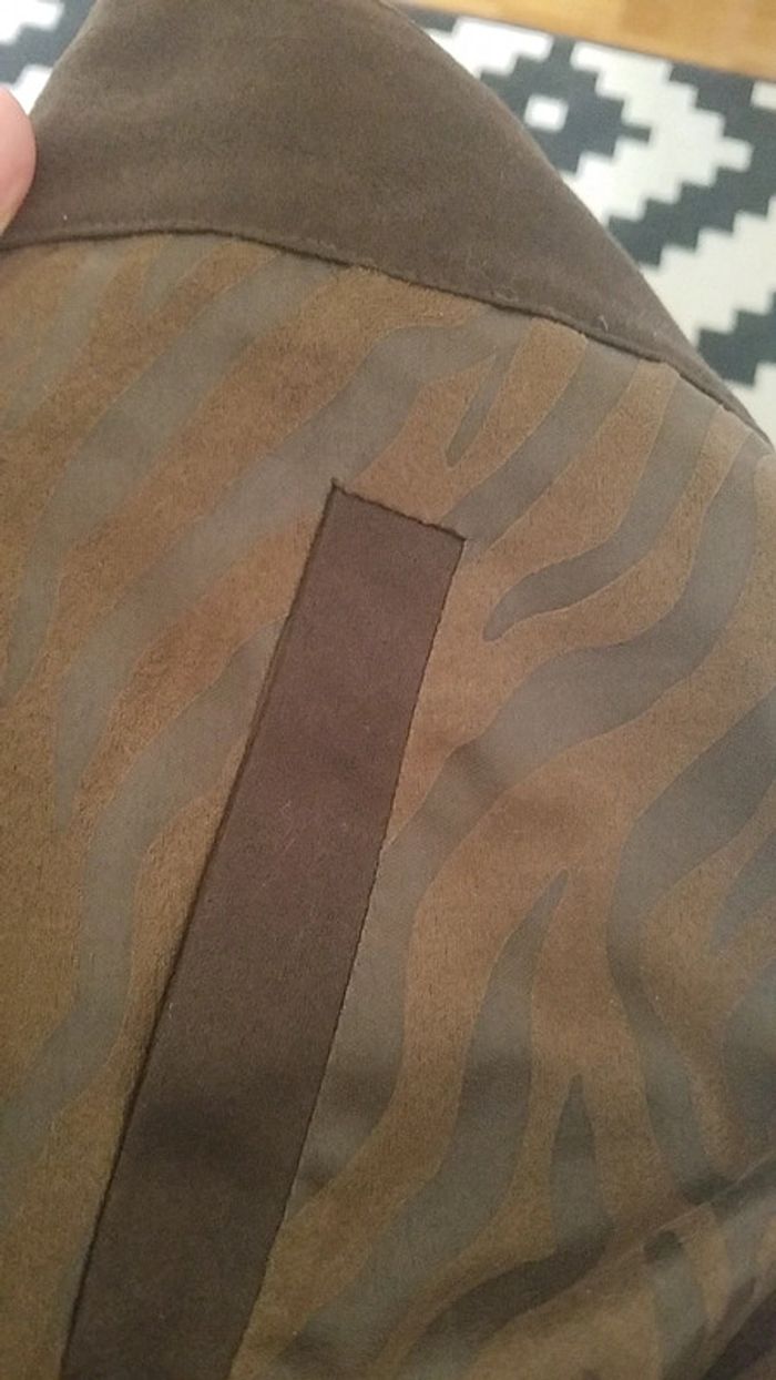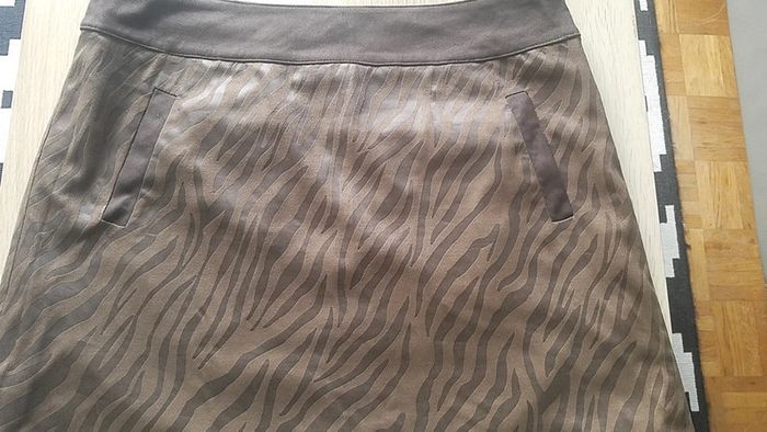 Mini jupe en daim marron avec motifs zébrés dans un marron plus foncé Deux poches devant Très bon état