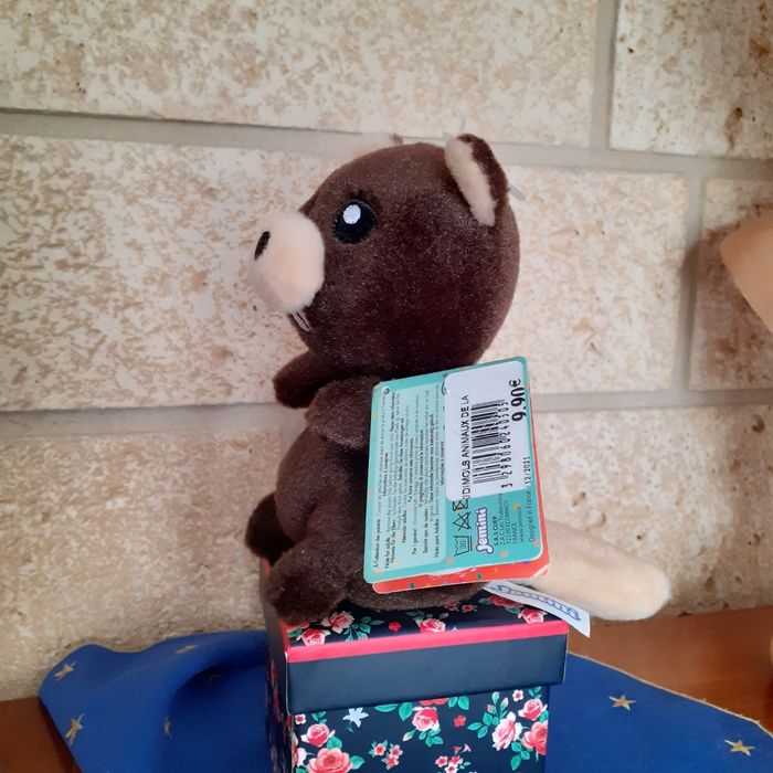 Article Neuf, encore étiqueté. Peluche Oscar le Castor ; licence Kidimols, série " Les animaux de la forêt ". Peluche entièrement rembourrée avec des petites billes à l'intérieur pour faciliter la position debout. Yeux et dents brodés. Hauteur totale de 14 cm // voir photos pour détails