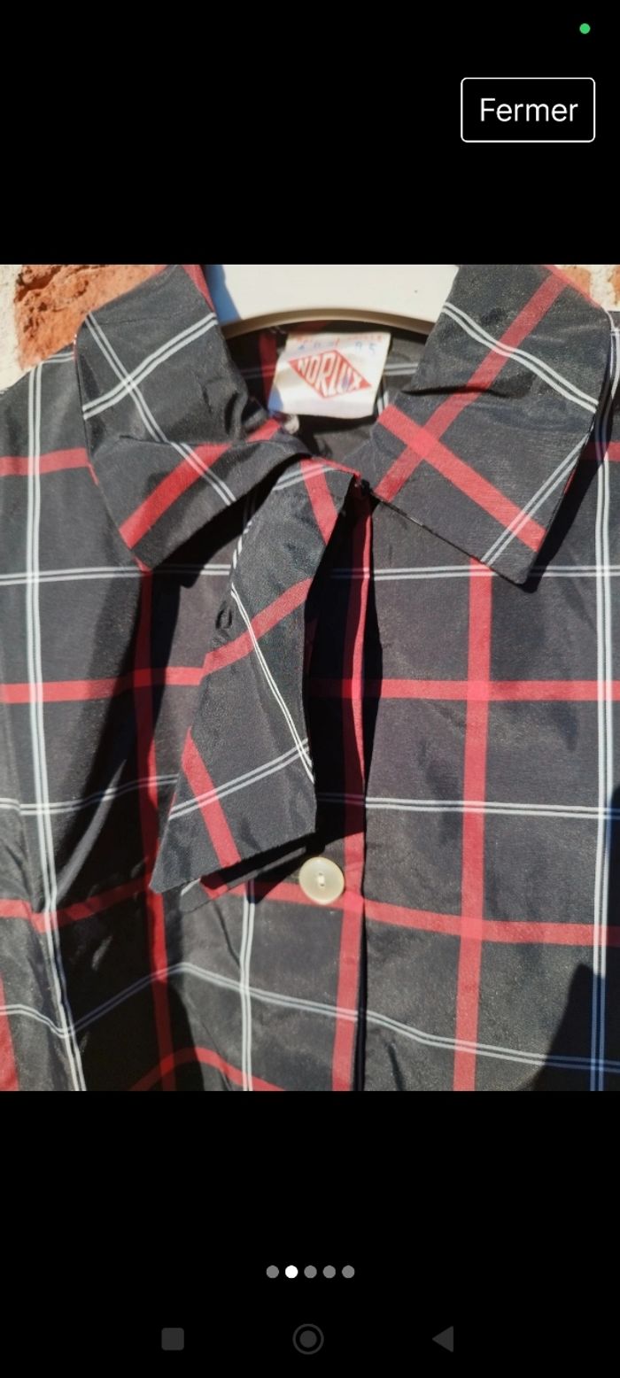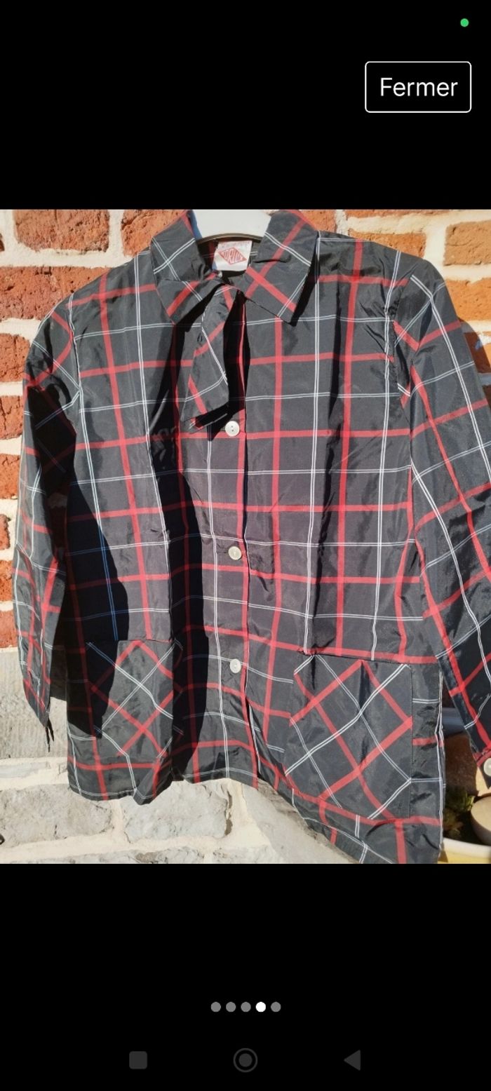 Sublime et authentique blouse vintage retrouvée chez une mamie qui avait une boutique dans les années 70... À porter en blouse ou comme top pour être ultra tendance ! 4 boutons 2 poches 100% nylon Neuve Étiquette taille 85 je pense que ça correspond à 10/12 ans, vérifiez vos mesures.... Épaules : 40cm Aisselles : 48cm Longueur : 64cm