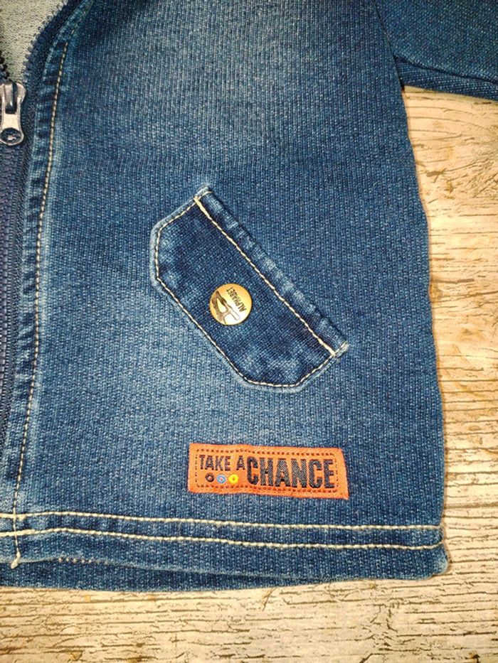 Jolie veste zippée coton imitation veste en jeans Taille 6 mois Très bon état Envoie rapide et soigné D'autres vêtements taille 6, 9, 12 mois à suivre dans mon dressing 🥰 n'hésitez pas à vous abonner pour en être alerté Réductions activées 😊 N'hésitez pas à faire des lot