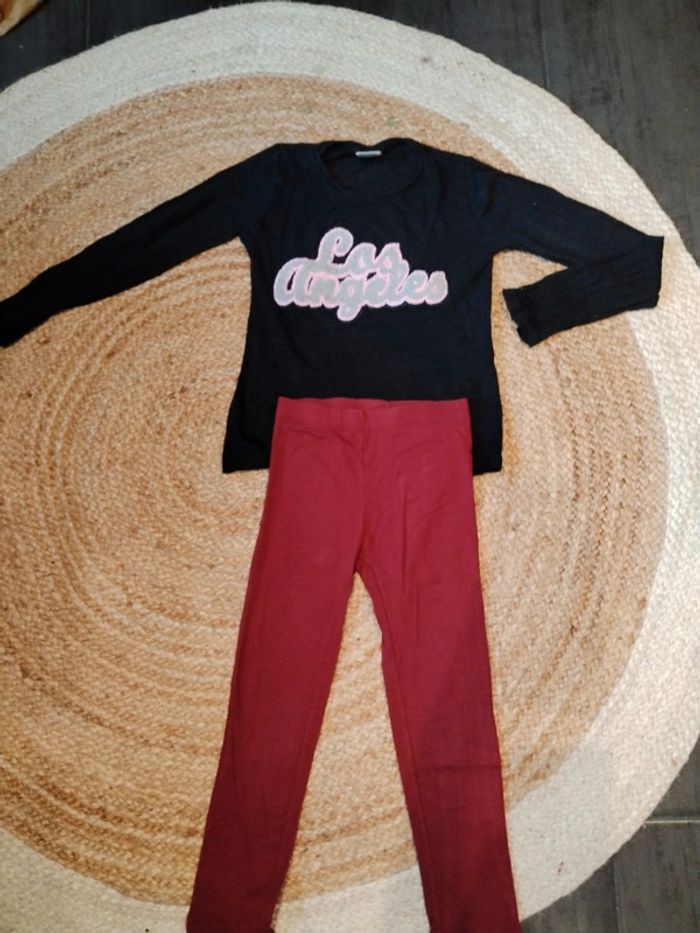 Ensemble t shirt Los Angeles Zara et Kiabi legging bordeaux 6 ans super état T shirt Zara ecrit 5 mais taille 6 ans Rose a broderie Et legging Kiabi bordeau 6 ans