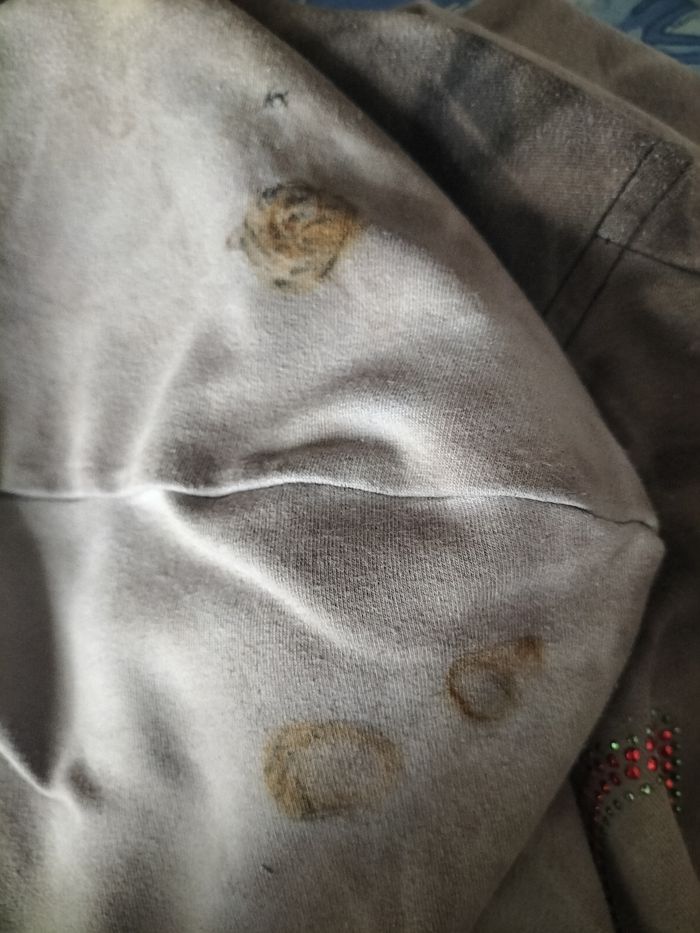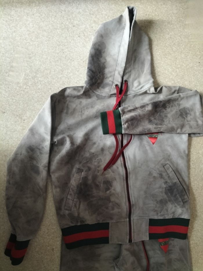 Bien lire car je ne reprends pas Survêtement fille Taille 12/14 ans Motifs effet sale Malheureusement tâches de rouille sur la capuche et une sur le pantalon , du au stockage sur une boucle de ceinture dans un bac , mais capuche baisser on ne voit rien 5€