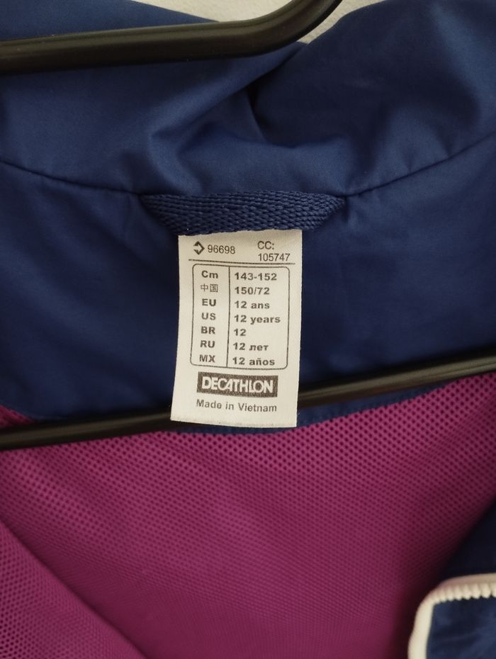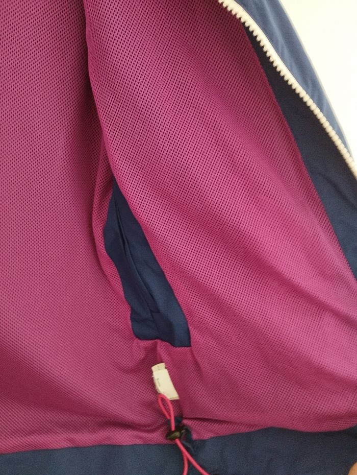 L'imperméable TAILLE XXS Le vêtement est en très bon état. Les fermetures éclair sont bien solides. Il y a 2 poches extérieures, 1 poche intérieure droite et 2 poches extérieures qui permettent d'accéder à l'intérieur du manteau. Les manches bénéficient d'un resserrage grâce à un scratch. Je ne connais pas la composition du vêtement car l'étiquette a été coupée (je sais juste que la doublure principale est faite en polyester). Avant l'envoi, le vêtement aura été lavé.