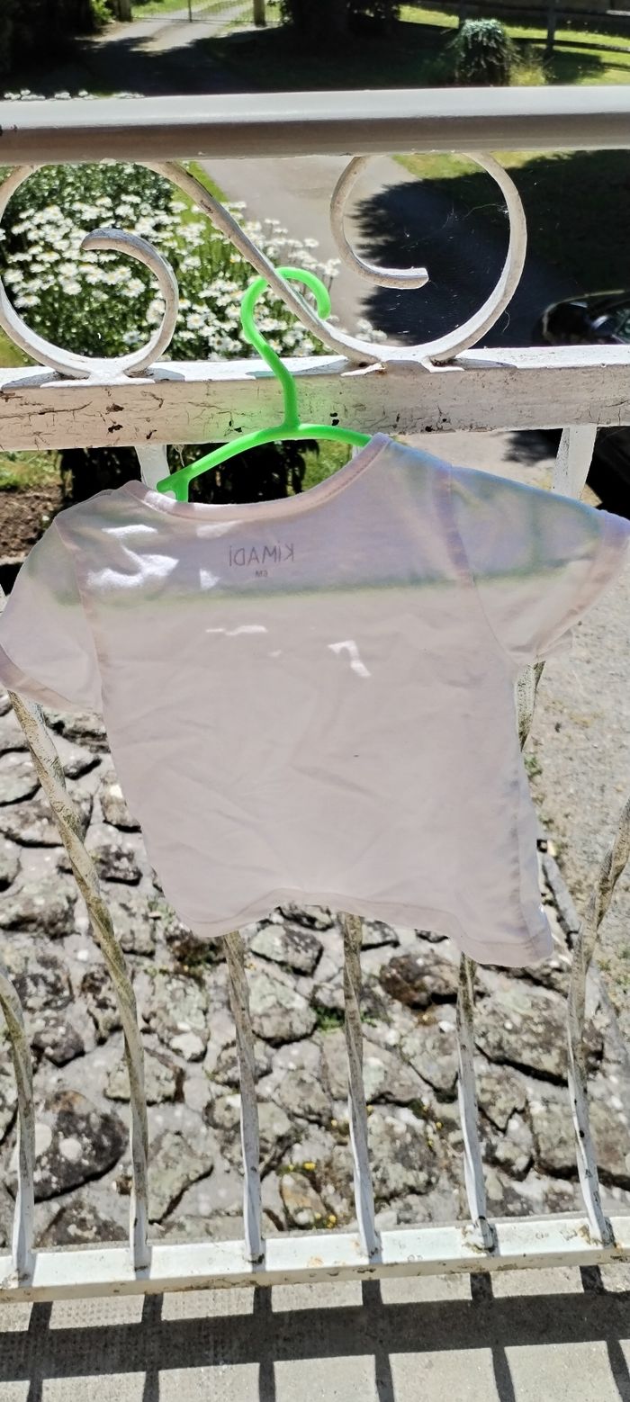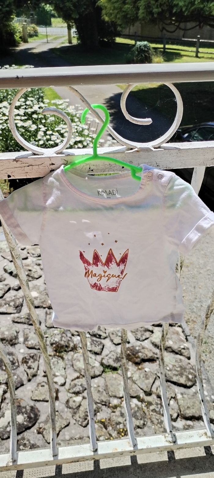 T Shirt blanc à manches courtes pour fille. Marque Kimadi. Taille 6 mois. Comme neuf. Que mondial relais ou Relais Colis.