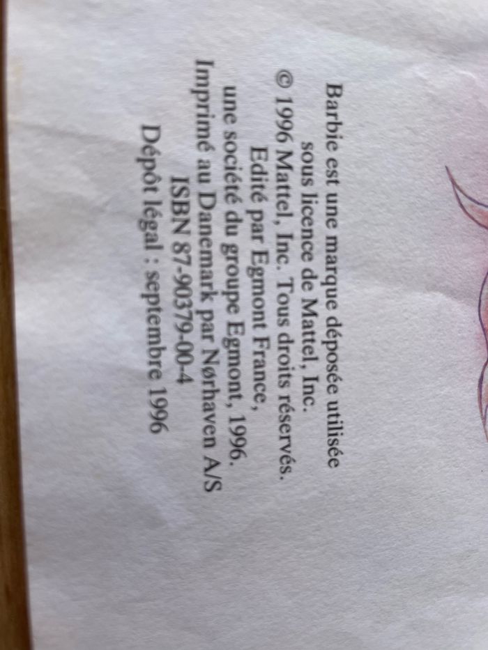 Les aventures de Barbie Barbie ballerine 1996 Traces de vieillesse Prenom écrit au stylo sur Première page intérieure Mattel