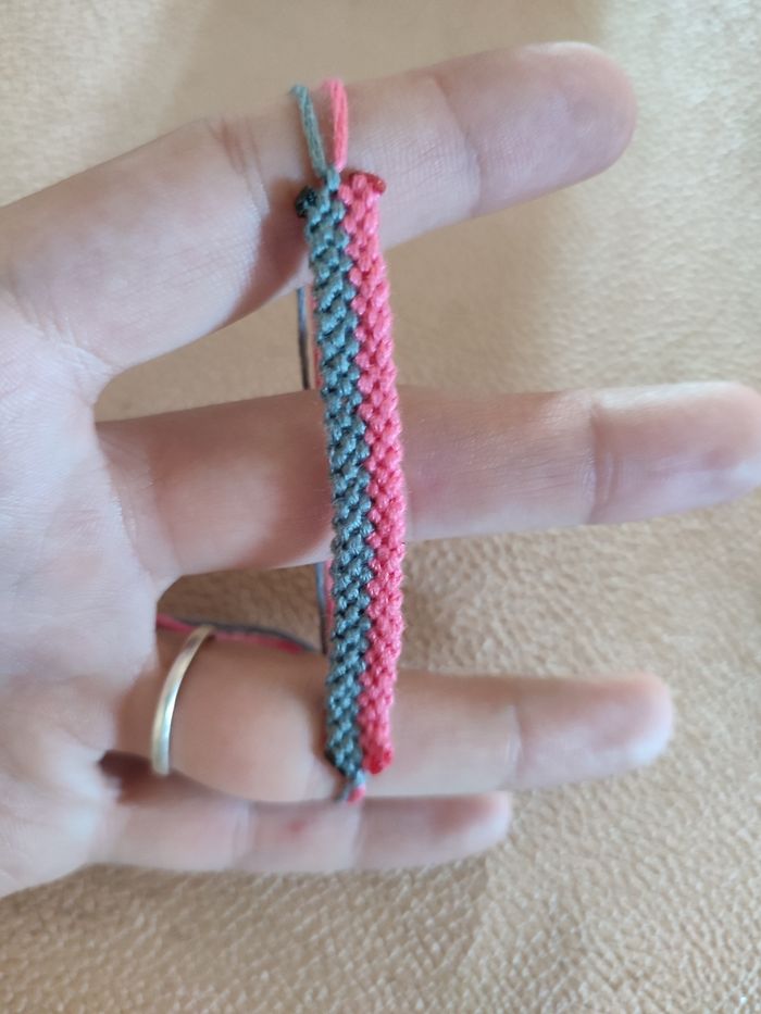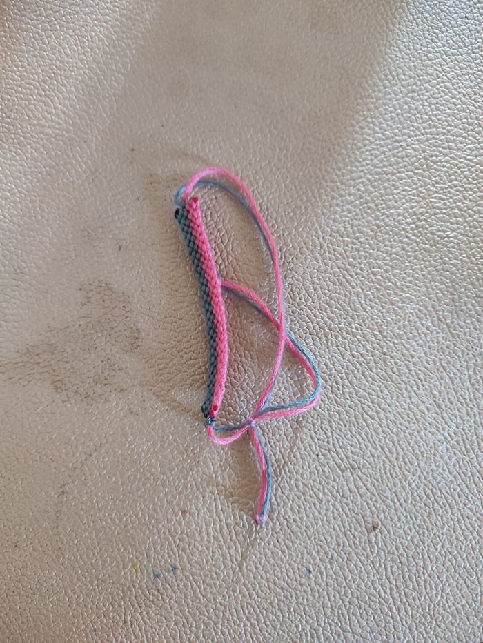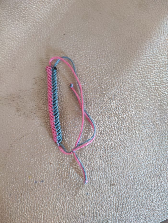 Bracelet couleur rose et gris, fait a la main. Il es réglable.