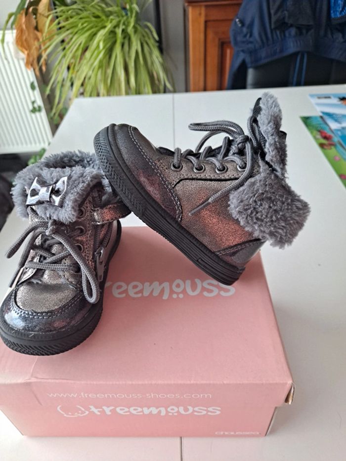 Bottines d' hiver grise marron. Intérieur fourrure. Système lacets et fermeture éclair.