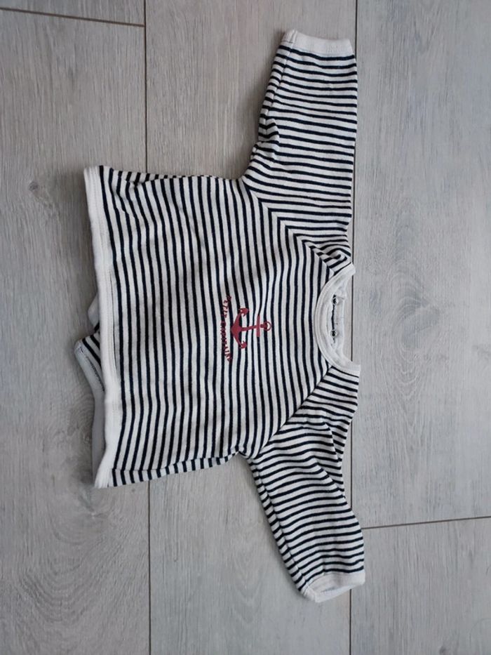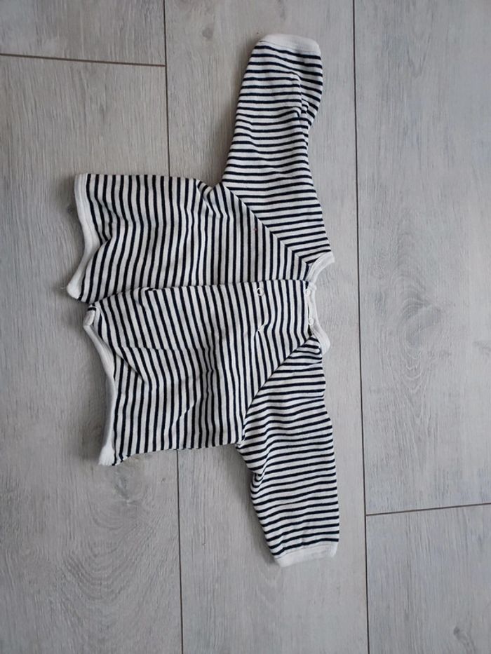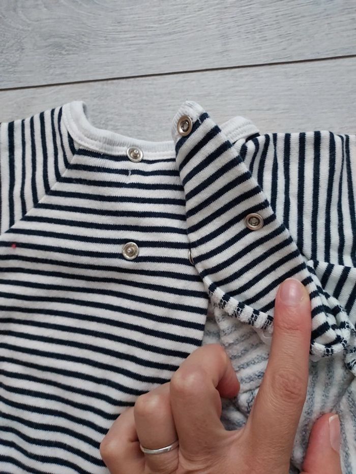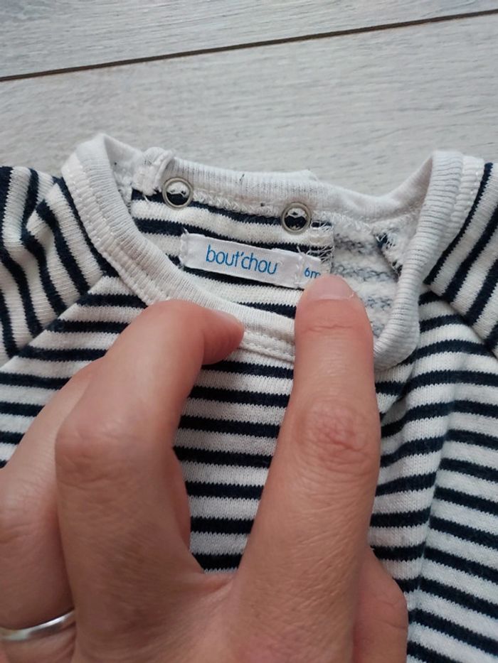 Sweat rayé bleu marine Ouverture dans le dos Marque Bout'chou Taille 6 mois Très bon état