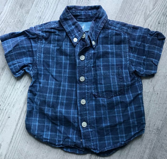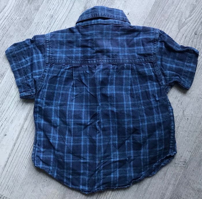 chemise à manches courtes de la marque Kiabi taille 12 mois couleur bleu à carreaux traces d’utilisation occasion, bon état