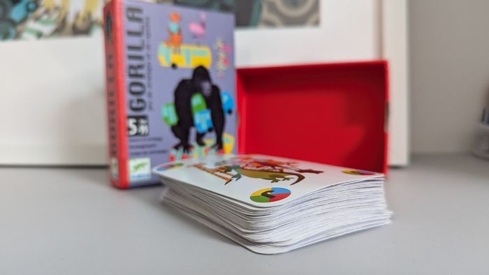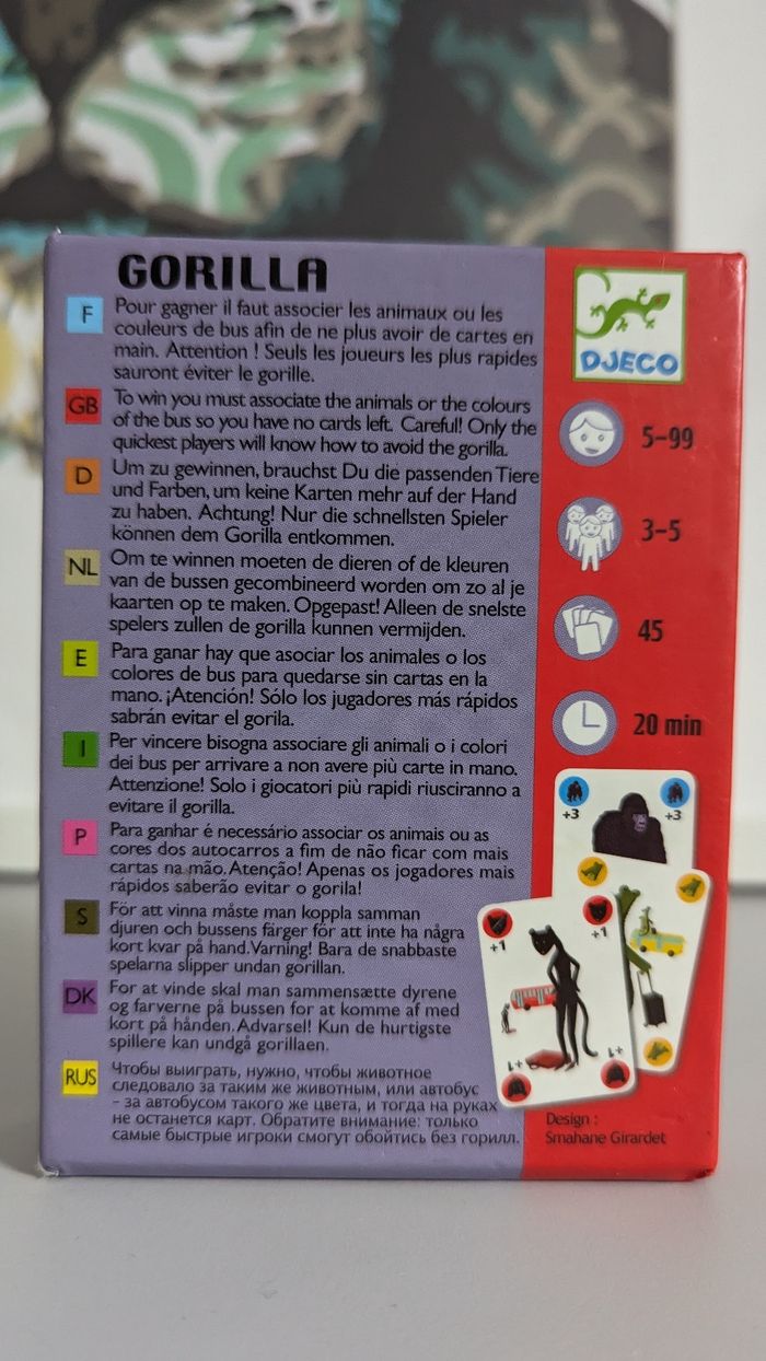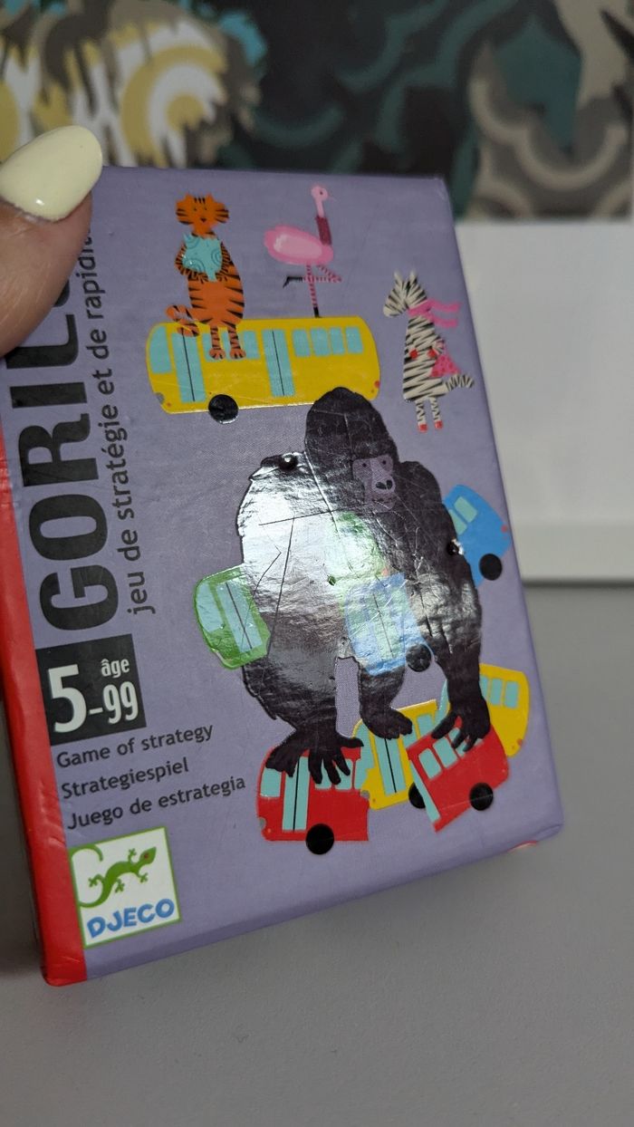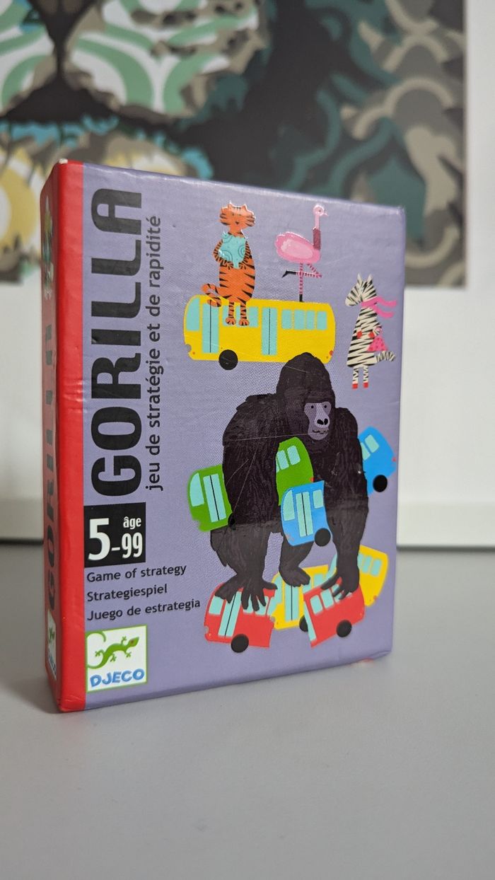 Jeu DJECO Gorilla Bon état Manque deux cartes animaux mais cela ne gêne. Les cartes spéciales sont au complet. Ol manque également les règles du jeu. Je vous les envoie en PDF et imprime la version française.