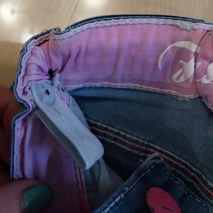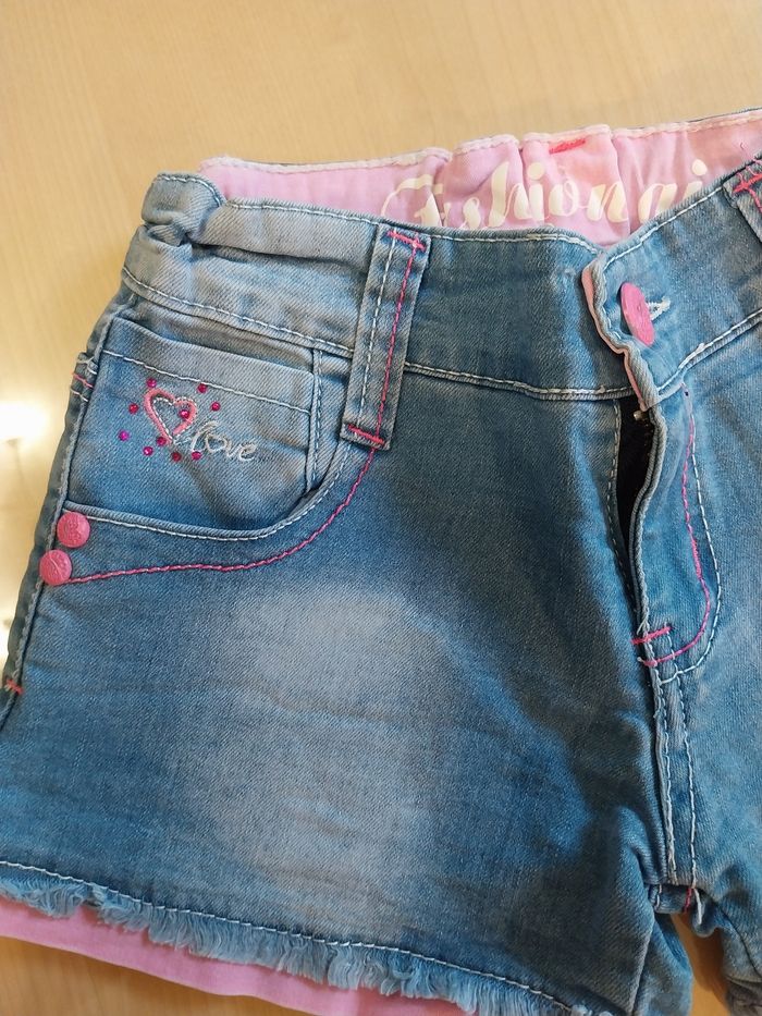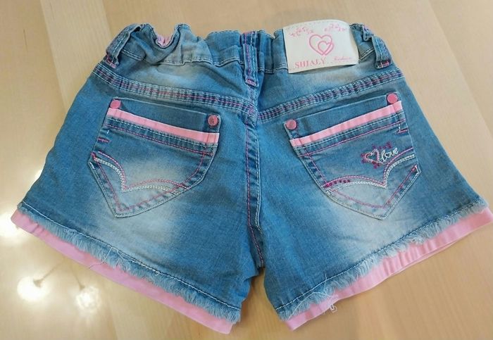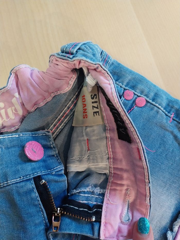 Short jeans bleu et rose. Taille 10ans. Taille réglable avec élastique.