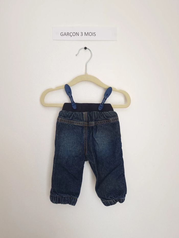 Pantalon jean garçon marque Kiabi 56-62 3 mois à enfiler par taille élastique doublure intérieur molletonnée couleur bleu marine jean Utilisé quelques fois en très bon état