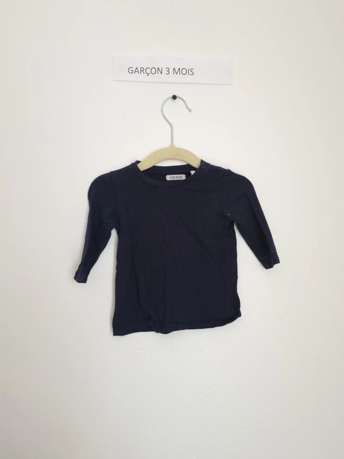T-shirt manches longues Fermeture à l'épaule par boutons pression Bleu nuit avec inscription sur la manche "I love you" en doré 3 mois 60 cm Marque IKKS Porté quelques fois mais en très bon état Plutôt fille