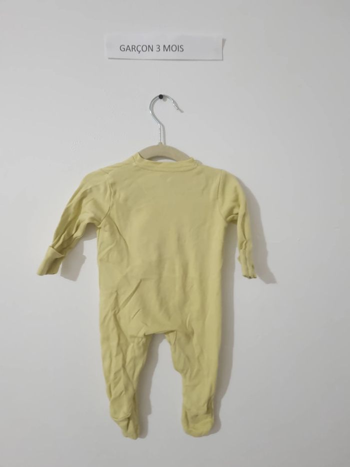 Pyjama 1 pièce léger utilisé plusieurs fois mais en très bon état marque Primark 0-3 mois 62 cm (taille plutôt en 3 mois) fermeture par boutons pression sur l'avant jaune citron à motif pastèque rose plutôt fille