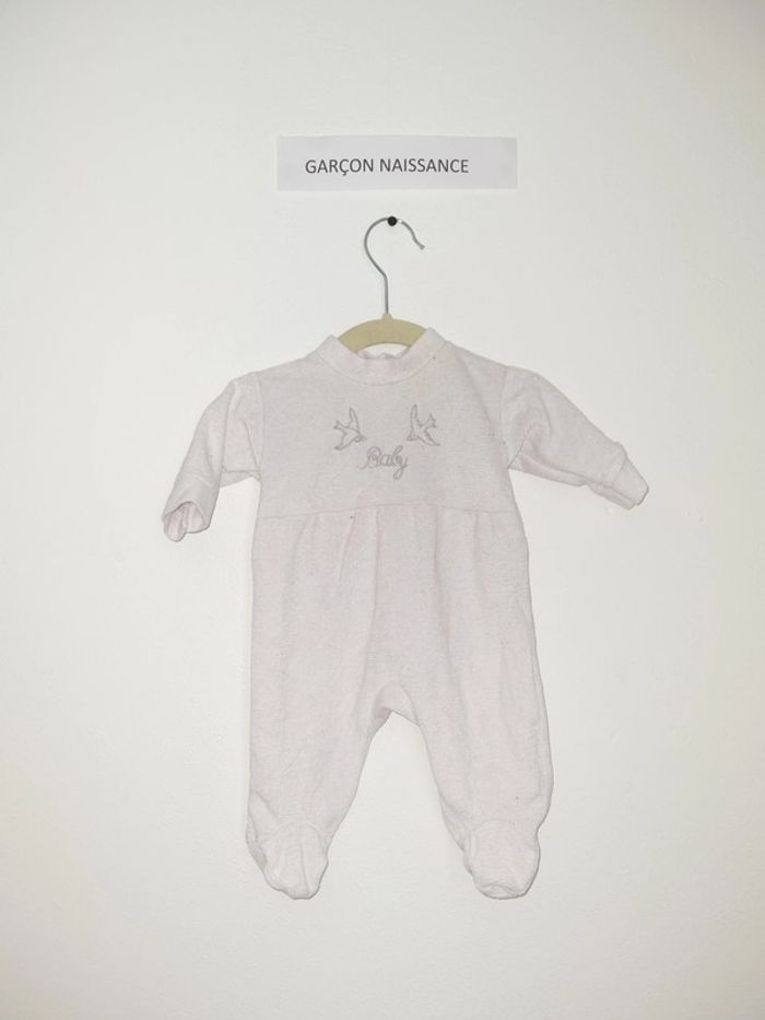 Pyjama 1 pièce chaud utilisé plusieurs fois mais en très bon état marque King bear taille Naissance 48-45 cm fermeture par boutons pression sur l'arrière blanc uni avec deux petit oiseau et une inscription "Baby" mixte mais plutôt fille