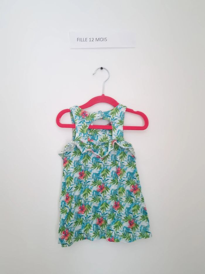 Robe à motifs "hawaiien" manche courte porté quelques fois en très bon état orchestra 12 mois 74 cm bouton pressions à l'arriere