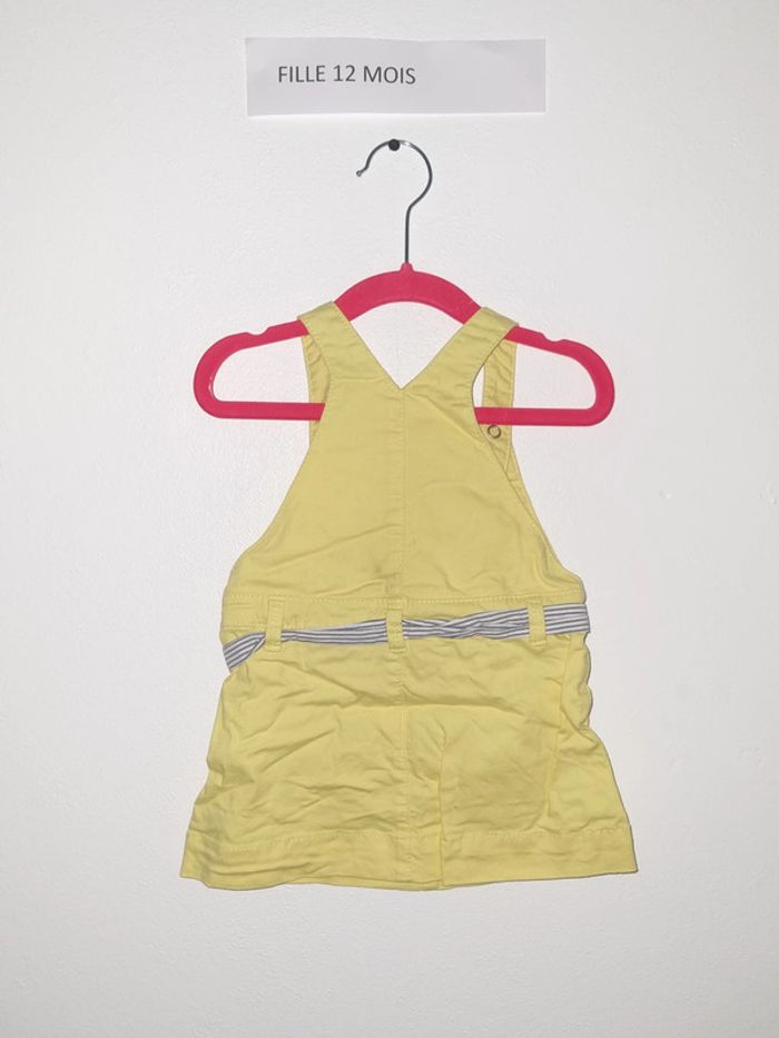 Robe salopette en jean jaune avec ceinture rayée porté une ou 2 fois en très bon état obaibi 12 mois 74 cm