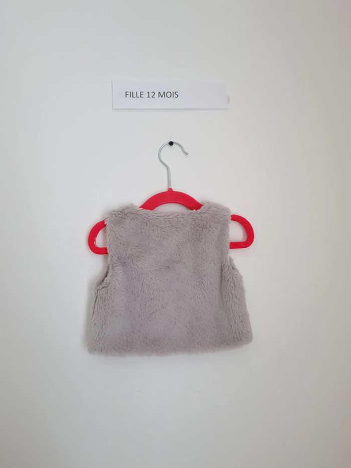 Gilet sans manche à fausse fourrure gris, Minnie Mouse en sequins doré sur le devant fermeture par l'avant par 1 boutons portés quelques fois en très bon état Primark 12/18 mois 86 cm