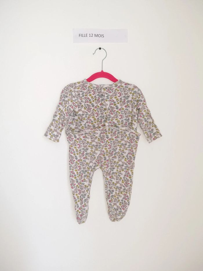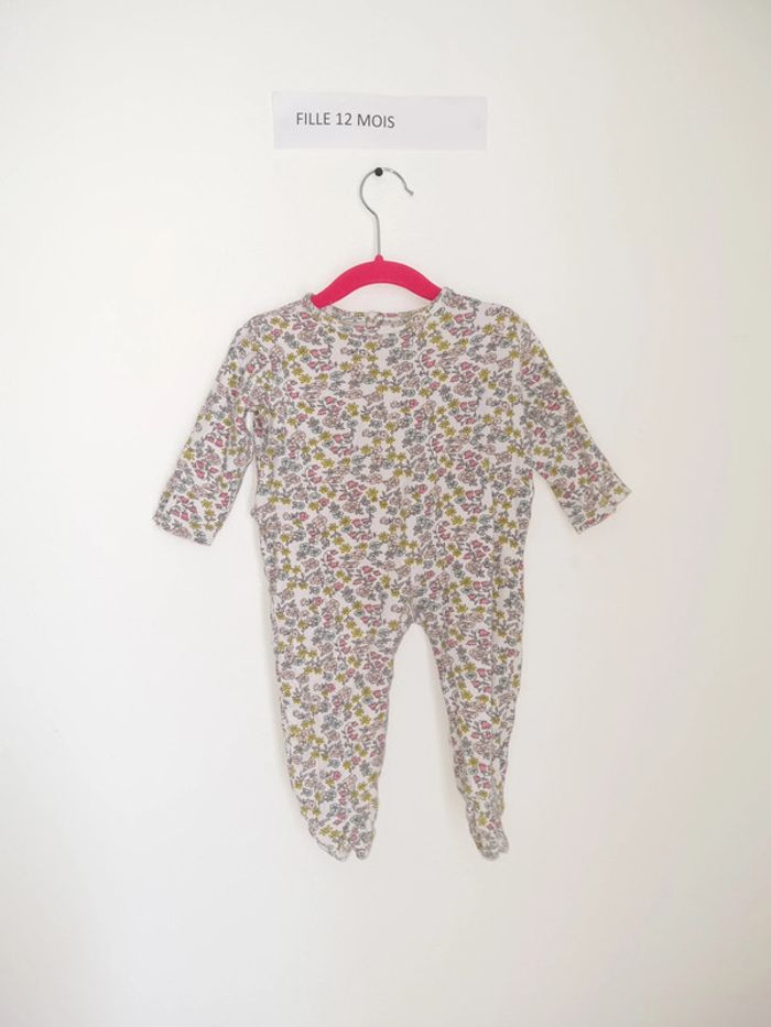 Pyjama 1 pièce blanc à fleurs de couleurs marque Manon & Valentin 12 mois 74 cm fermeture bouton pression sur l'arrière porté plusieurs fois mais en bon état