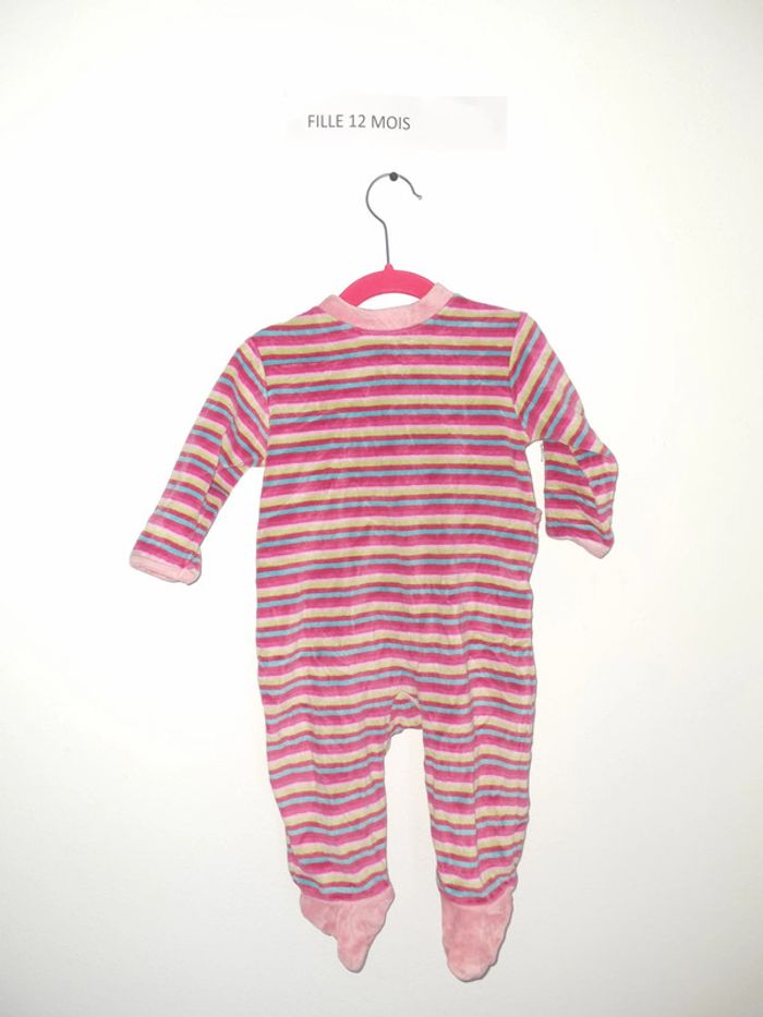 Pyjama 1 pièce fille à rayures de couleurs, rose dominant marque Vertbaudet 12 mois 74 cm fermeture bouton pression sur l'arrière porté plusieurs fois mais en bon état