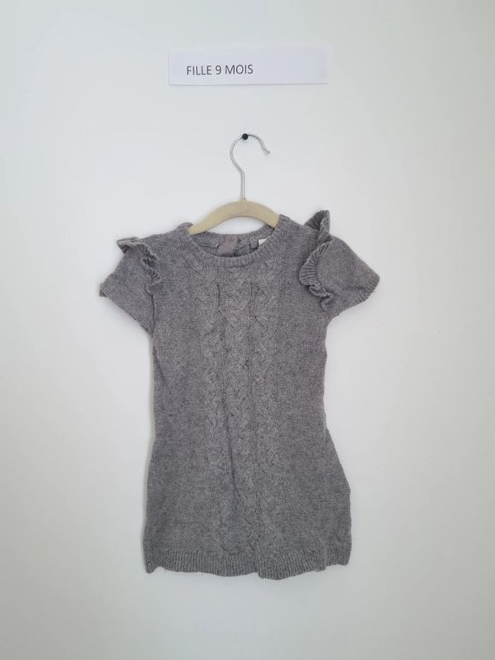 Robe pull uni grise manche courte porté 1 ou 2 fois en très bon état à enfiler fermeture à l'arrière par boutons marque h&m 9-12 mois 80 cm
