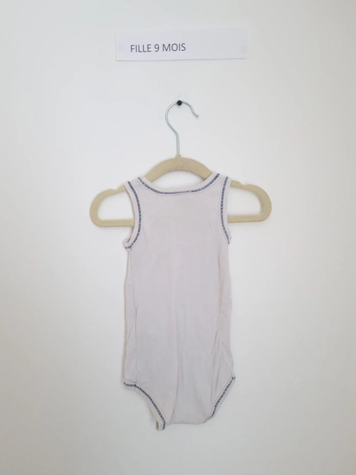Body fille petit bateau à bretelles 9mois 71 cm blanc à enfiler bouton pression au niveau de l'entre-jambe à motifs petits cœurs bleu marine portés plusieurs fois mais en très bon état