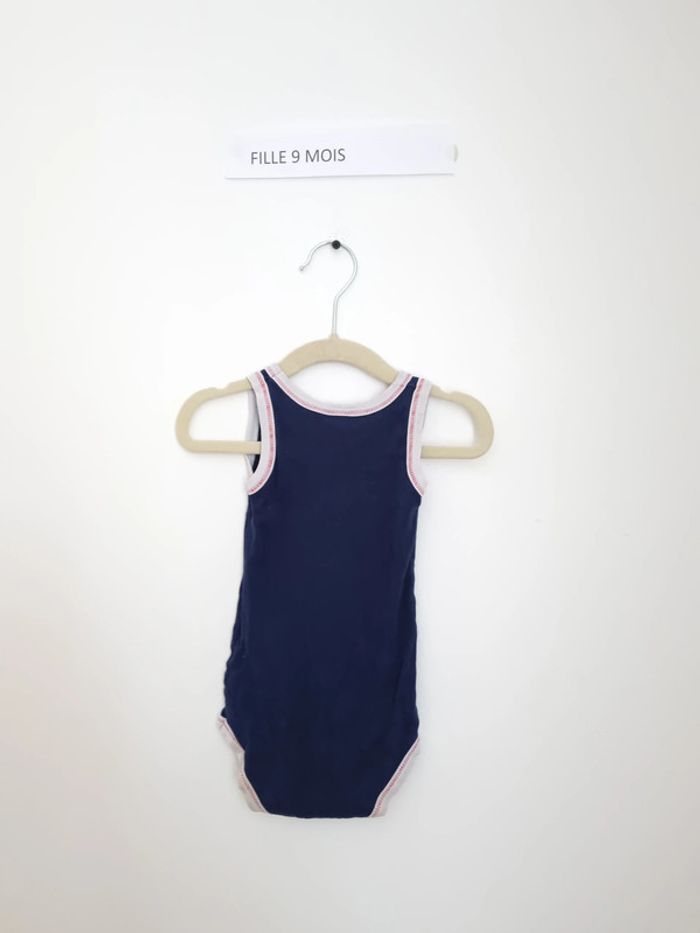 Body fille petit bateau à bretelles 9mois 71 cm bleu marine à enfiler bouton pression au niveau de l'entre-jambe petite ancre rouge "original" portés plusieurs fois mais en très bon état