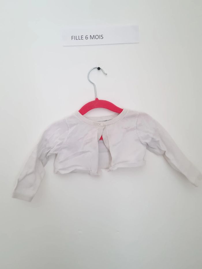 Boléro fille blanc Fermeture sur le devant par 1 bouton Manches longues porté plusieurs fois mais en très bon état ( froissé sur la photo du au stockage) obaibi 6 mois 68 cm