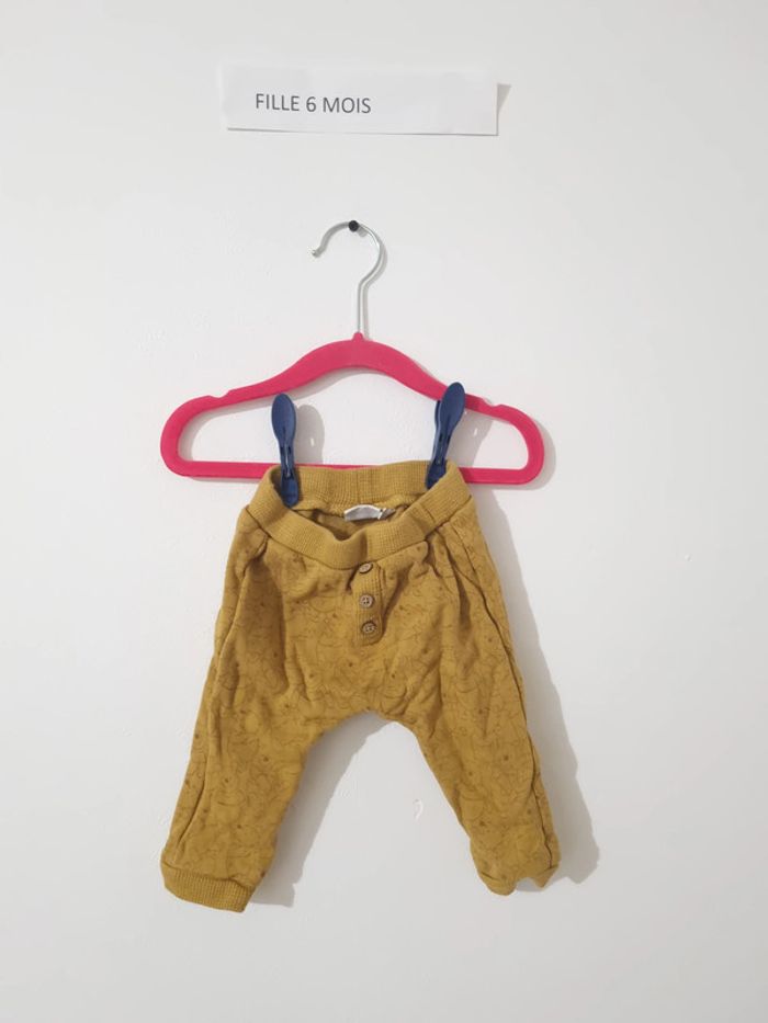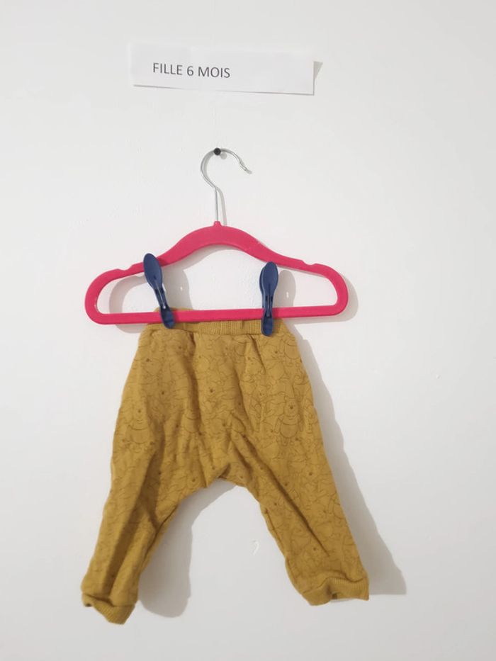 Pantalon Winnie moletonné de couleurs moutarde avec tête de Winnie un peu partout en moutarde plus foncé porté une ou deux fois en très bon état pantalon mixte, un pull est assortis disponible dans mon dressing "catégorisé garçon" mais c'est juste mon système de rangement pour m'y retrouver dans mes cartons au moment de préparer les commandes... j'ai acheté ces deux éléments le même jour de façon à les mettre ensemble, mais ce n'est pas un ensemble de base Disney baby 6 mois