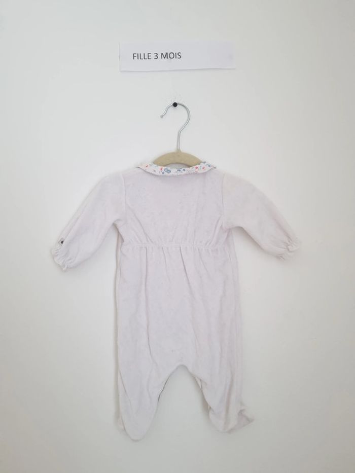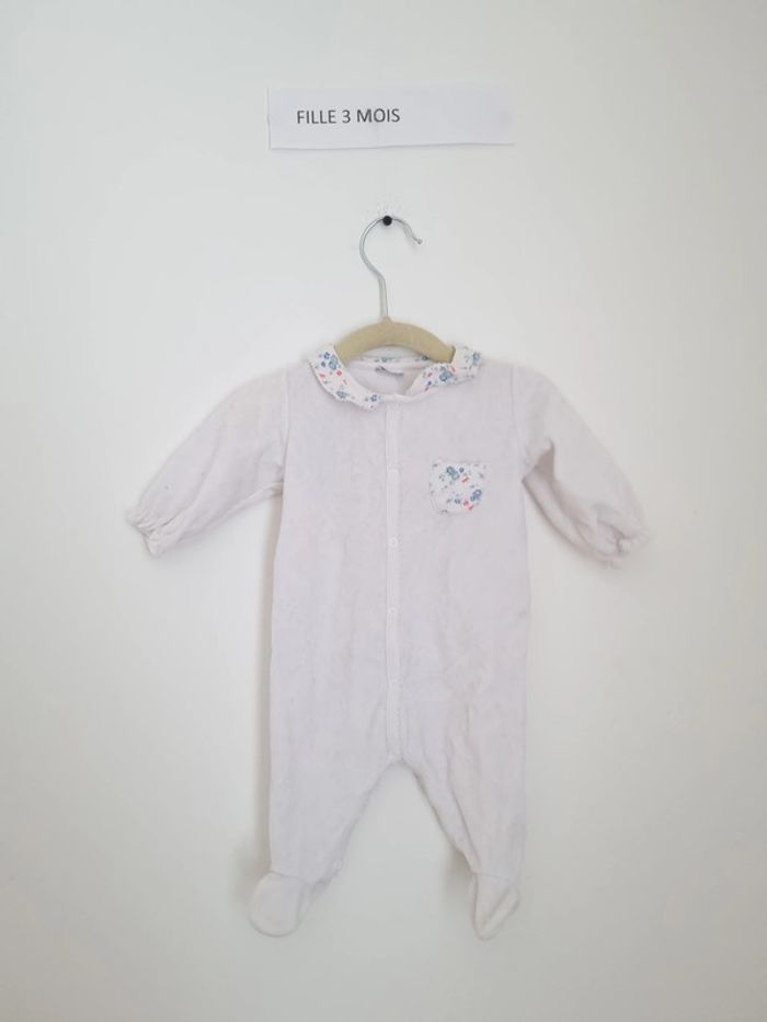 pyjama 1 piève fermeture sur le devant par bouton pression marque petit bateau 3 mois 60 cm blanc uni avec col et poche avant motif fleuris