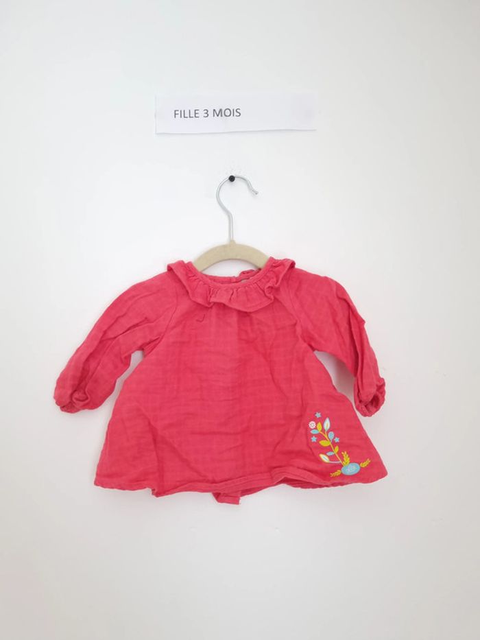 Tunique orchestra 3 mois 60 cm De couleur rose avec motif fleuri sur le bas fermeture à l'arrière par bouton porté quelques fois mais en très bon état
