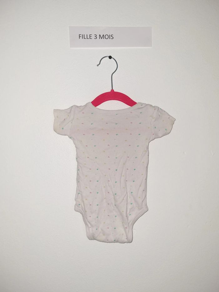 Body fille 3 mois / 62 cm portés plusieurs fois mais en bon état body blanc avec motifs coeurs de plusieurs couleurs