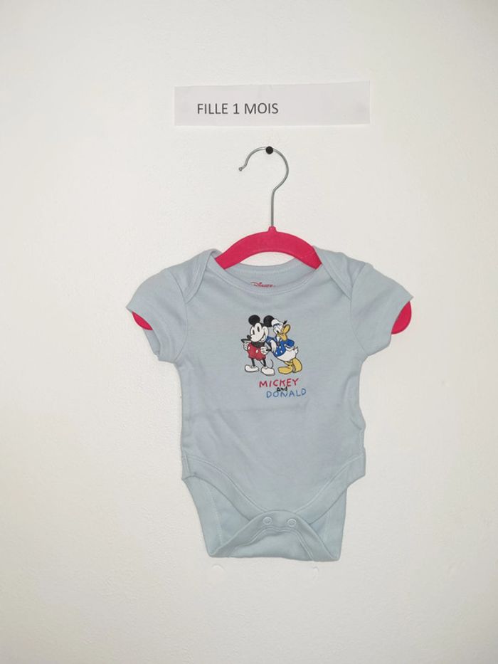 Body manche courte motif mickey Disney mixte taille 1 mois 4.5 kilos à enfiler (encolure américaine) bouton pressoir au niveau de l'entre jambe