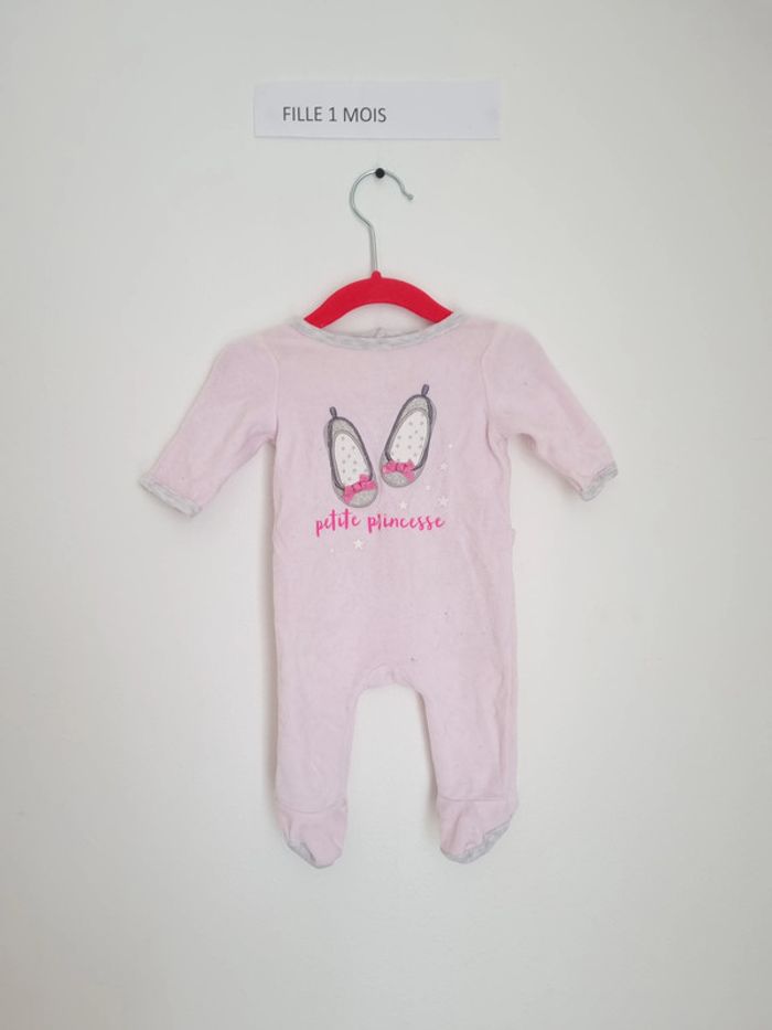 Pyjama épais Baby by Gémo 1 mois fermeture sur l'arrière par boutons pressoir motif ballerine " petite princesse"