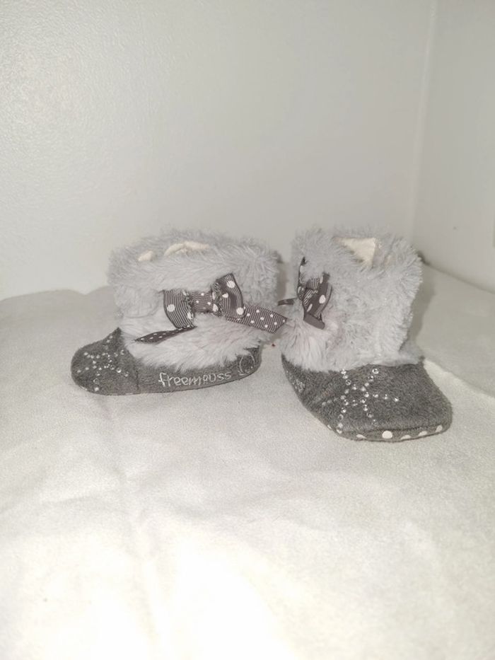 peu portés bottes grises avec fourrure, et nœud papillon, fermeture à scratch