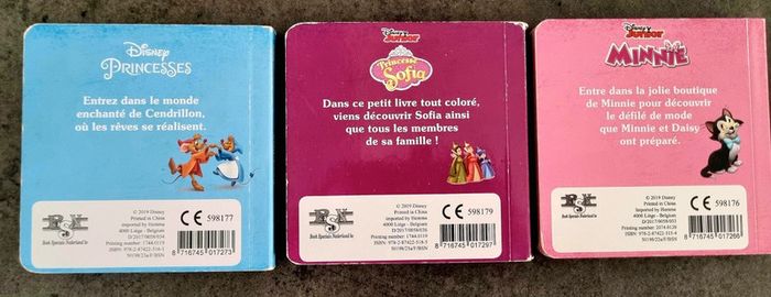 Lot de 3 livres Disney : Princesse Sofia portrait d'une famille royale Princesse Cendrillon Minnie et la mode