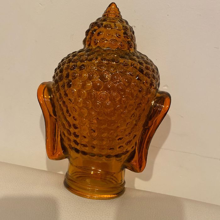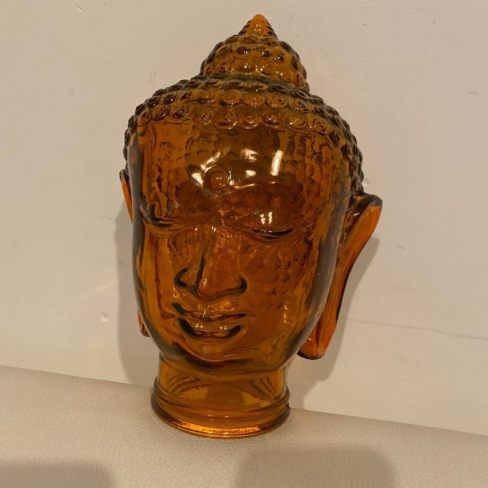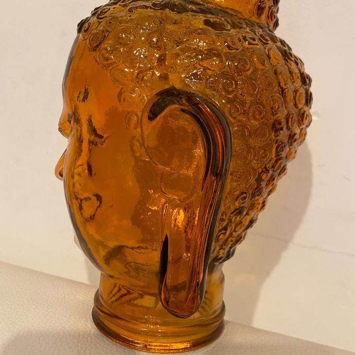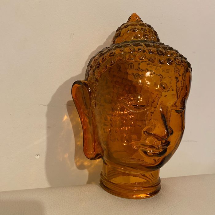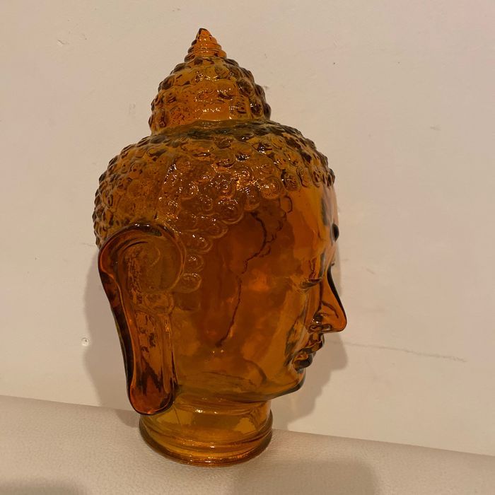 Tête de bouddha orange en verre  30 cm - photo numéro 1